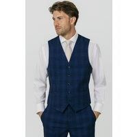 Dobell Mens Royal Blue Waistcoat Regular Fit Shadow Check-L (42-44in)