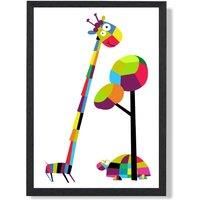 Part of our Kids Geometric Animal Collection. This framed print features a Brightly Coloured Giraffe Arrives Framed Ready to Hang. All of our Artwork is Custom Printed and Framed to order in the UK. This print is also available in two other sizes and with White, Oak and Black Frames. Available in separate Listings. | ARTZE Giraffe Bright Geometric Animal Framed Print SIZE: A3 with Black Frame | Size: A2