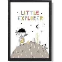 Part of our Scandi Quote's and Animals Collection. This framed print features a Cute Little Boy Explorer motif in shades of Blue and Yellow Arrives Framed Ready to Hang. All of our Artwork is Custom Printed and Framed to order in the UK. This print is also available in two other sizes and with White, Oak and Black Frames. Available in separate Listings. | ARTZE Cute Little Boy Explorer Scandi Quote Framed Print SIZE: A2 with Black Frame in Pale Blue