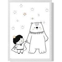 Part of our Scandi Prince Collection. This framed print features a Little Boy with Bear motif in Black and White and White and Beige Arrives Framed Ready to Hang. All of our Artwork is Custom Printed and Framed to order in the UK. This print is also available in two other sizes and with White, Oak and Black Frames. Available in separate Listings. | ARTZE Scandi Prince Little Boy with Bear Framed Print SIZE: A4 with White Frame in Black | Size: A2