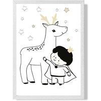 Part of our Scandi Prince Collection. This framed print features a Little Boy with Reindeer motif in Black and White and White and Beige Arrives Framed Ready to Hang. All of our Artwork is Custom Printed and Framed to order in the UK. This print is also available in two other sizes and with White, Oak and Black Frames. Available in separate Listings. | ARTZE Scandi Prince Little Boy with Reindeer Framed Print SIZE: A3 with White Frame in Black | Size: A2