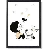 Part of our Scandi Prince Collection. This framed print features a Little Boy with Rabbit motif in Black and White and White and Beige Arrives Framed Ready to Hang. All of our Artwork is Custom Printed and Framed to order in the UK. This print is also available in two other sizes and with White, Oak and Black Frames. Available in separate Listings. | ARTZE Scandi Prince Little Boy with Rabbit Framed Print SIZE: A4 with Black Frame | Size: A2