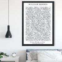 Transform your space with this exquisite William Morris Framed Art Print. The floral pattern, Morris' iconic design element, infuses any room with sophisticated charm and timeless beauty. This captivating artwork seamlessly blends classic elegance with bold colour, making it the perfect statement piece for your home. Elevate your dcor with this enduring masterpiece today! | ARTZE William Morris Willow in Grey Art Print / Black Frame / SIZE: A4 in Light Grey | Size: A2