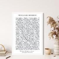 Transform your space with this exquisite William Morris Framed Art Print. The floral pattern, Morris' iconic design element, infuses any room with sophisticated charm and timeless beauty. This captivating artwork seamlessly blends classic elegance with bold colour, making it the perfect statement piece for your home. Elevate your dcor with this enduring masterpiece today! | ARTZE William Morris Willow in Grey Art Print / White Frame / SIZE: A2 in Light Grey