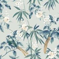 Material: Paper. Design: Birds, Flowers, Leaves. Design Repeat: 53cm. Easy Application, Offset Pattern Match, Paste the Paper. | Arthouse Floral Birds Wallpaper in Grey