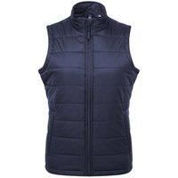 Outer Materials: 100% Nylon. Lining Material: 100% Polyester. Filling Material: 100% Polyester. Design: Quilted. Fabric Technology: Insulating, Lightweight, Water Resistant. Packaway. Sleeve-Type: Sleeveless. Neckline: Standing Collar. Pockets: 2 Zip Pockets, Open Pockets. Fastening: Full Zip. | Premier Women's Recyclight Gilet in Navy | Size: Small