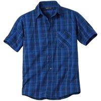 70% Cotton, 27% Polyester, 3% Elastane. Fabric: Poplin, Stretch. Design: Checked. Pockets: 1 Chest Pocket. Fastening: Button-Down. Hem: Rounded, Twin Needle Stitch. Sleeve-Type: Short-Sleeved. Neckline: Turn Down Collar. Cuff: Twin Needle Stitch. Pleated Back. Length: 80cm. | Atlas for Men Men Checked Stretch Shirt in Blue | Size: large
