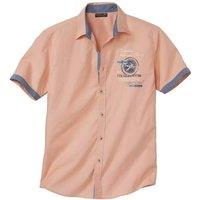 100% Cotton. Fabric: Poplin. Design: Contrast Detail, Printed, Text. Fastening: Button-Down, Horn Buttons. Hem: Rounded. Sleeve-Type: Short-Sleeved. Neckline: Turn Down Collar. 2 Back Pleats, Chambray Panel. Fit: Comfort. 110gsm. | Atlas for Men Men Short-Sleeved Shirt in Coral | Size: 2X-large