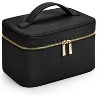 100% Leather-Look PU. Fabric: Saffiano Fine Grain. Lining: Soft Touch. Carry Handle, Multi-Purpose, Tearaway Label. Fastening: Two Way Zip. Compartments: 1 Main Compartment. Pockets: 1 Internal Pocket, Zip, Pouch Pocket. Capacity: 4L. Sustainability: REACH. | Bagbase Boutique Vanity Case in Black - Manufacturers part number: Bagbase_5063300452721