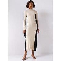 JOSEPH Bicolour Knit Maxi Dress Size & Fit True to size - order your usual size Regular fit Maxi length Available in sizes S - L Details Bicolour Knit Maxi Dress by JOSEPH Cream Long sleeves High neck Knitted with colour block Material & Care Material Content: Merino Wool 75% Silk 25% Washing Instructions: Machine Washable
