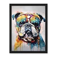 Artery8 English Bulldog Dog Wearing Vintage Sunglasses Artwork Framed Wall Art Print 18X24 Inch