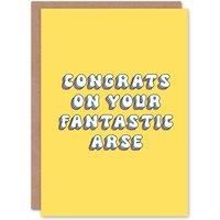 Artery8 Greeting Card Congrats on Your Fantastic Arse Retro Yellow For Her Wife Woman Girlfriend Birthday Card
