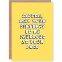 Artery8 Greeting Card Fabulous As Your Face Bright Retro Yellow For Her Sister Birthday Card
