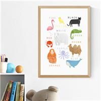* Colourful animal print* Fade-resistant* Printed on 210gsm acid-free archival paper* Available in A1, A2, A3 & A4 size* Frame options: black, white and oak wood effect* Available in unframed option Ideal for a child's room or nursery, this colourful print features a range of friendly animals, with the names of their colours featured nearby. It's the perfect way to add a bright, decorative touch, whilst teaching children about colours. This print is available in a range of sizes, solid wood frames or ... - Manufacturers part number: 30983706