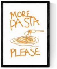 Who doesnt want more pasta£ Add this cheeky print to your kitchen walls to add a fun and bright pop of colour to your decor. Designed by Stephie Cardona. Produced using a Giclee printing process to prevent against fading, and printed on 210gsm acid free archival paper with a digital white border in a black obeche frame. Overall size H44, W31.7, D2.2cm.Weight 0.93kg. Framed print. Rectangular. Hinge. Obeche wood frame included. EAN: 5063317552810.