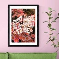 * Modern with a retro twist* Positive message* Floral background* Printed on 210gsm acid-free archival paper* Available in A1, A2, A3 & A4 sizes* Frame options: black, white and oak wood effect* Available in an unframed option This fade-resistant Giclee print carries the positive message, 'Right Where You Are Supposed To Be' in bold typography over a floral background. Perfectly walking the line between modern and retro style, this print is available in multiple sizes and frame options, including unfr... - Manufacturers part number: 30992942
