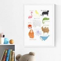 * Colourful animal print* Fade-resistant* Printed on 210gsm acid-free archival paper* Available in A1, A2, A3 & A4 size* Frame options: black, white and oak wood effect* Available in unframed option Ideal for a child's room or nursery, this colourful print features a range of friendly animals, with the names of their colours featured nearby. It's the perfect way to add a bright, decorative touch, whilst teaching children about colours. This print is available in a range of sizes, solid wood frames or ... - Manufacturers part number: 30983499