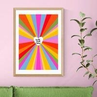 * Bold and vibrant colours* Typography style* Fade resistant printing* Printed on 210gsm acid-free archival paper* Available in A1, A2, A3 & A4 sizes* Frame options: black, white and oak wood effect* Available in an unframed option This vibrant, colourful print features an 'Anti Bad Vibes' typography design in the centre of a bold sunburst of colour - fade-resistant and perfect for modern walls. It's available in multiple sizes to suit your space and can be unframed or framed depending on your prefer... - Manufacturers part number: 30992799