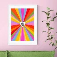 * Bold and vibrant colours* Typography style* Fade resistant printing* Printed on 210gsm acid-free archival paper* Available in A1, A2, A3 & A4 sizes* Frame options: black, white and oak wood effect* Available in an unframed option This vibrant, colourful print features an 'Anti Bad Vibes' typography design in the centre of a bold sunburst of colour - fade-resistant and perfect for modern walls. It's available in multiple sizes to suit your space and can be unframed or framed depending on your prefer... - Manufacturers part number: 30992940