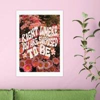 * Modern with a retro twist* Positive message* Floral background* Printed on 210gsm acid-free archival paper* Available in A1, A2, A3 & A4 sizes* Frame options: black, white and oak wood effect* Available in an unframed option This fade-resistant Giclee print carries the positive message, 'Right Where You Are Supposed To Be' in bold typography over a floral background. Perfectly walking the line between modern and retro style, this print is available in multiple sizes and frame options, including unfr... - Manufacturers part number: 30992972
