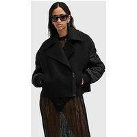 AllSaints Orla Jacket Size & Fit True to size - order your usual size Oversized fit Available in sizes 8 - 16 Details Orla Jacket by AllSaints Black Mid-weight wool and cashmere-blend fabric Wide notched collar Double-breasted silhouette with an asymmetric zip fastening Two front pockets Long bomber jacket-style gathered sleeves Cropped length Material & Care Material Content: Wool(75);Polyamide(20);Cashmere(5) - Manufacturers part number: W495Q