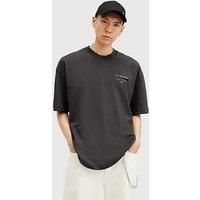 AllSaints Redact Crew Neck T-Shirt Relaxed fitSize & Fit True to size - order your usual size Relaxed fit Available in sizes S - 2XL (S:36"", M:38"", L:40"", XL:42"", 2XL:44"") Details Redact Crew T-Shirt by AllSaints Black Breathable, lightweight cotton AllSaints branding to the chest and back Crew neck Dropped shoulders Short sleeves Material & Care Material Content: 100% Cotton. Washing Instructions: Machine Washable