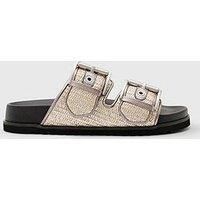 AllSaints Sian Raffia Sandals Size & Fit True to size - order your usual size Standard fit Available in sizes 3 - 8 Details Sian Raffia Sandals by AllSaints Silver Round open toe Wide straps with buckles Open back Chunky sole Slip on Material & Care Material Content: Raffia(80);CowLeather(20) Washing Instructions: Wipe Clean