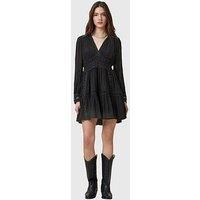 AllSaints Xanthe Long Sleeve Mini Dress Size & Fit True to size - order your usual size Regular fit Mini length Available in sizes 8 - 16 Details Xanthe Long Sleeve Mini Dress by AllSaints Black Long sleeves V neck Lace trims Tie back Pullover Material & Care Material Content: Viscose(100) Washing Instructions: Machine Washable