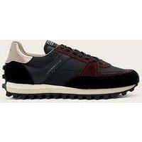 AllSaints Viggo Runner Low Top Trainer Size & Fit Standard fit Available in sizes 3 - 8 Details Viggo Runner Low Top Trainer by AllSaints Black Textile upper with leather and suede overlays AllSaints branding to the tongue, back and side Round toe Lace fastening Wraparound style lugged rubber outsole Material & Care Material Content: CowLeather(60);Polyamide(40)