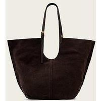 AllSaints Ara Suede E/W Tote Size & Fit One size Large Handle length: Min: 22cm - Max: 39cm Height: 38cm, width: 57cm, depth: 12cm Details Ara Suede E/W Tote by AllSaints Brown Oversized tote shaped from suede with enough room for all of your on-duty essential Magnetic closure Long adjustable straps Scoop cutout armhole One pocket Metal hardware Unlined Material & Care Material Content: CowLeather(100)