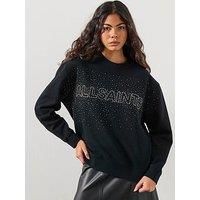 AllSaints Sprinkle Etta Sweatshirt Size & Fit True to size - order your usual size Oversized fit Available in UK sizes: XS: 2-4; S: 6-8; M: 10-12; L: 14-16 Details Sprinkle Etta Sweatshirt by AllSaints Black Long sleeves Crew neckline Ribbed trims Scatteredd embellishment with AllSaints branding Material & Care Material Content: Cotton(70);Polyester(30) - Manufacturers part number: WSQSY