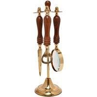 A magnifying glass, letter opener and bottle opener from HARVEY MAKIN.With this item the discerning gentleman will have almost every angle covered. A set of three classic tools that once in possession, will make life go that bit more smoothly. They all have a classic look about them due to their traditional design, as well as the combination of wood with gold colouring. Features: Classic Design Stylish Stand Gift-Worthy Specifications: Dimensions: H:29.5 x W:11.6 x D:9.3 cm Colour: Brown Guarantee:1 Mon...