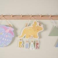 * Adorable Hanging Plaque* Triceratops Shaped* Lovely, Pastel Colourways* Playful & Educational* Beaded Rope Hanger Meet the adorable Triceratops Roar Hanging Plaque from Petit Cheria must-have for any nursery or child's room! Kids of all ages love dinosaurs, and this cheerful yellow triceratops plaque is the perfect way to bring that dinosaur-inspired magic into your little one's space. Not only is it a fun decoration, but it also encourages learning in a playful way. The plaque features the word " ... - Manufacturers part numbers: WDP-CG1957|30932968