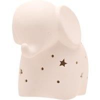 * Ceramic night light* Elephant shaped* Gentle illumination* Star and circle pattern* Battery operated Create a magical atmosphere with this playful elephant shaped night light from BAMBINO BY JULIANA. Meticulously crafted in ceramic, the star and circle perforations create an enchanting pattern in the space. An effortless mix of function and beautiful design, this night light will enhance any space and make bedtime a pleasure. - Manufacturers part number: 30932950