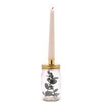 * Jar style candle holder* 17cm tall* Artificial plant stems* Gold tone lid A romantic ambience is easy to achieve with this jar style candle holder from Love Story. Standing 17cm tall and suitable for taper candles, the glass jar holds artificial plant stems for a sleek and rustic look. - Manufacturers part number: 30937120