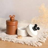 A Disney Mickey Shapes Set of 2 Trinket Pots. Modern design for a classic Disney franchise. A great way to celebrate the magic of Disney in your home and create lasting memories for Disney superfans. Made from ceramic with a speckled finish. The design stands out due to both lids having a special embellishment on them, namely miniature Mickey Mouse heads. Part of the officially licensed Disney Home Mickey Shapes collection. . Officially Licensed Disney Merchandise . Ideal Gifting Item . Dimensions (mm): H75 x W55 x D55 . Weight (g): 78 - Manufacturers part numbers: Disney_|30963263