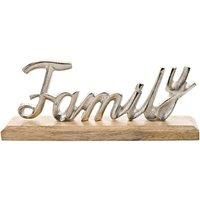 * Sturdy wooden base with metallic lettering* Elegant design* Perfect adding a calming feel to any home Celebrate the heart of the home with the Hestia 'Family' Sign. Crafted with gleaming silver metal script resting on a wooden base, this decorative piece brings timeless elegance and warmth to your interior. Whether displayed on a mantle, shelf, or hallway table, it expresses the strength and unity of family in a beautifully understated way. - Manufacturers part number: 30990889