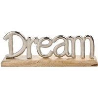 * Sturdy wooden base with metallic lettering* Elegant design* Perfect adding a calming feel to any home Invite a sense of possibility into your space with the Hestia 'Dream' Sign. This elegant dcor piece features refined silver metal lettering mounted on a warm wood base, creating a sleek yet grounded look. Perfect for bedrooms, home offices, or nurseries, this sign serves as a stylish daily reminder to stay inspired. - Manufacturers part number: 30990960