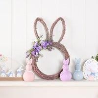 * Lovely decorative piece* Low maintenance* Perfect statement piece Hop into the Spring season with this lovely Bunny Ear Wreath from the Egg Traordinary Gifting Company. Crafted from high-quality natural material, this unique wreath blends springtime colours and textures, with adorable bunny ears and vibrant purple faux flowers and foliage. The cheerful design is a charming way to celebrate the Easter season and add a festive touch to your home. Ideal for welcoming spring, this wreath brings a pop of c... - Manufacturers part number: 30984570