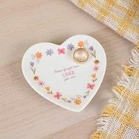 * Beautiful Floral Design* " Never Forget How Loved You Are" Motif* Made from Ceramic Treat someone special with the You Are Loved Ceramic Trinket Tray. Shaped like a heart, it features a heartfelt quote and a pretty floral design. - Manufacturers part number: 30984664
