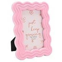 Add a fun and fashionable touch to your dcor with the Hestia Wavy Edge Photo Frame, a vibrant pink decorative frame designed to hold a 4x6 inch image. With its bold wavy border and glossy finish, this eye-catching photo frame brings a sense of playfulness and charm to any modern or youthful interior. Ideal for placing on shelves, desks, or bedside tables, this pink picture frame is perfect for displaying your favourite photos while adding a lively pop of colour to your home. | Hestia Wiggly Frame 4" x 6" - Pink