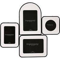 Hestia Impressions Black 4 Multi Aperture Photo Frame Capture cherished moments with the Impressions Black 4 Multi Aperture Photo Frame, a stylish and visually appealing way to display your favourite snapshots. Designed to hold four photos at once, it creates a personalised collage that adds character to any space. The sleek black frame brings a modern, sophisticated touch, making it a standout addition to your decor. Depth: 475 MM Multi-Aperture Layout Height: 440 MM Material Content: Metal Width: 10 M...