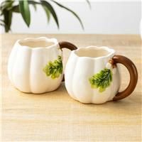 * Set of two ceramic mugs* Playful pumpkin silhouette* Gently scalloped rim* Smooth comfortable handle Start cosy mornings with the Set of 2 Pumpkin Shaped Mugs. Designed with a playful pumpkin shape and softly scalloped rims, they bring seasonal style to tea, coffee or hot chocolate. Smooth handles offer a comfortable hold with a natural look, perfect for everyday use. A lovely gift to warm any kitchen. - Manufacturers part number: 31025829