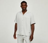 Belier Seersucker Short Sleeve Shirt in Grey. Beat the heat in style with this breathable, lightweight shirt! Upgrade your summer wardrobe with a unique textured look. Woven with alternating stripes of smooth threads, this shirt creates a subtle pattern and superior airflow, keeping you cool and comfortable. Wear it on its own or layer it over a vest Pair it with our smart shorts, trousers, or trainers for effortless summer style. Grey Size - M