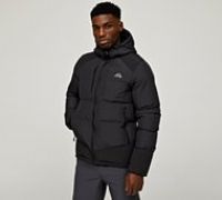 Alpyrex Element Puffer Jacket in Jet Black. A functional jacket that is perfect for winter weather. It is made from a durable and water-resistant fabric, and it features a warm and insulated filling. The jacket also has a number of features that make it ideal for outdoor activities, such as a drawcord hood, adjustable cuffs, and zippered pockets. Black Size - XL