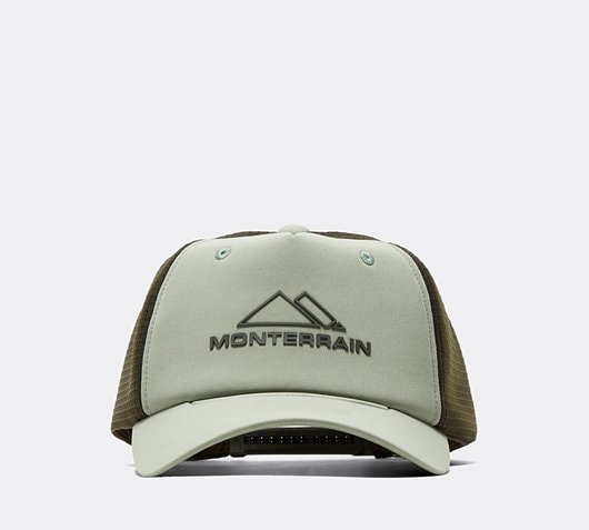 Monterrain Gravity Pinch Peak Cap in Seaspray and Forest Night. Exclusive to Footasylum. Floating around your casual collection in typical style, this half mesh trucker cap boasts a fully adjustable snapback fastening for a custom fit. Curved peak, embroidered breathe holes, small reflective back tab and large Monterrain branding to front of crown. Green Size - ONE SIZE
