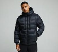 Zavetti Canada Anvox Puffer Bomber Jacket in Jet Black. Combining the warmth of a puffer with the sleek silhouette of a bomber, this jacket is designed for both function and style. Featuring premium insulation and a water-resistant shell, the Anvox provides reliable warmth and protection against the elements, making it your go-to jacket for colder weather. Black Size - XS