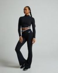 Forena Womens SLB Layer Yoga Pants in Jet Black. Designed to cling to your body and flatter, these yoga pants are sculptured to offer up maximum comfort and stellar style. With a unique layered crossover elasticated waistband adding a classy twist and a tight-fitting, body-forming leg that tapers out into a wide cuff at the bottom. Forena badge branding to left hip. Black Size - XL