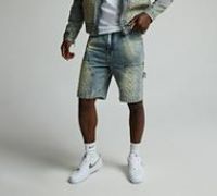Dripmade Monogram Carpenter Denim Shorts in Vintage Blue Wash. Joining up the dots of the missing pieces from your wardrobe, a case is made for the inclusion of these workmanlike denim shorts from Dripmade. Forged with that classic denim feel complete with a button top fastening, jean pockets, carpenter-style denim loop for your imaginary hammer, textured front panels and back pocket with embossed Dripmade 'D' logos and stars / diamonds for a real stand-out style. Blue Size - 28