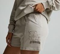 Dripmade Womens Orion Shorts in Dove. Your wardrobe's latest star signing ensures your nicer weather wardrobe will hit the ground running when the nicer weather eventually comes. With a wide elasticated and adjustable drawstring waistband for a secure custom fitting, open slanted side pockets for your hands and/or small essentials and embroidered and printed Dripmade left thigh branding complete with metal accents. Regular fit. Grey Size - L